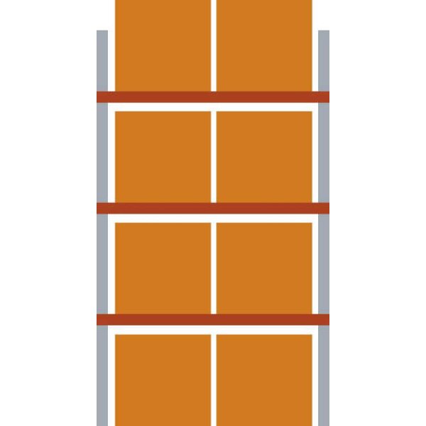 -Komplettregal mit 4 Lagerebenen Diese Palettenregale eignen sich für leichte bis mittelschwere Belastung. Die geschlossenen Kastenprofile garantieren eine hohe Stabilität und die Ständer bestehen aus kaltverformten Profilen, die bauseits mit der Ausfachung verschraubt werden. Eine Längs- oder Quereinlagerung ist möglich.