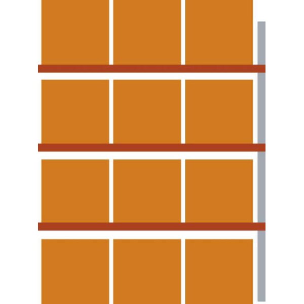-Komplettregal mit 4 Lagerebenen Diese Palettenregale eignen sich für leichte bis mittelschwere Belastung. Die geschlossenen Kastenprofile garantieren eine hohe Stabilität und die Ständer bestehen aus kaltverformten Profilen, die bauseits mit der Ausfachung verschraubt werden. Eine Längs- oder Quereinlagerung ist möglich.