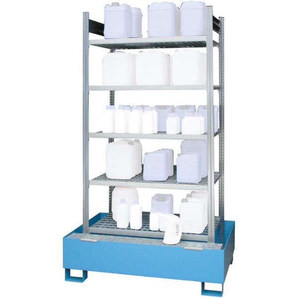 -Kleingebinde-Gefahrstoffregale mit lackierter Standwanne Diese Kleingebinde-Gefahrstoffregale sind beidseitig nutzbar und eignen sich zur vorschriftsmäßigen Lagerung von wassergefährdenden und entzündbaren Stoffen.
