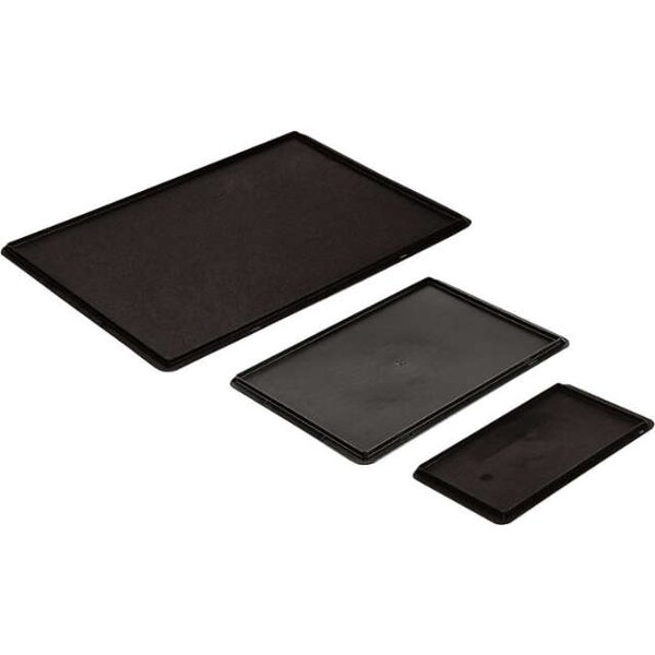 -Auflagedeckel für Transport-Stapelkästen, schwarz Diese Auflagedeckel sind universell einsetzbar als Staubdeckel.