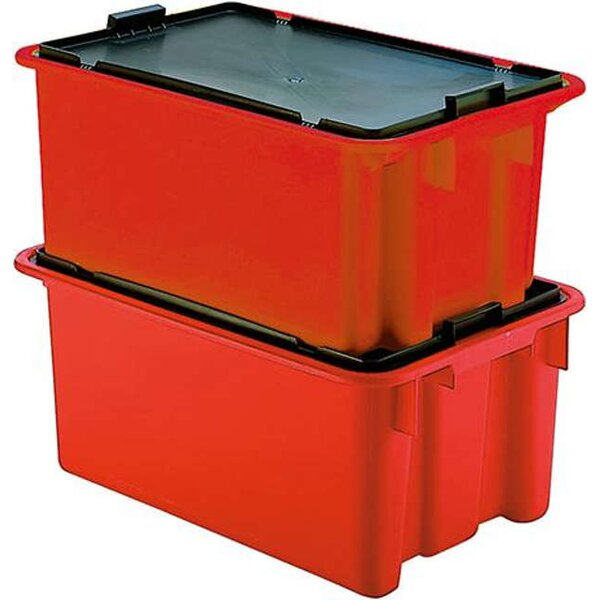 -Drehstapelbehälter, rot Diese Drehstapelbehälter sind aufeinander und nach 180°-Drehung ineinander stapelbar.