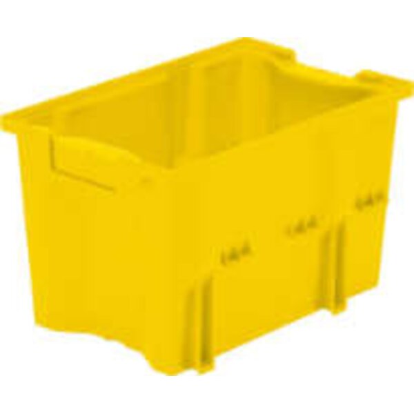 -Drehstapelbehälter Serie DLK, gelb Diese Drehstapelbehälter sind aufeinander und nach 180°-Drehung ineinander stapelbar.