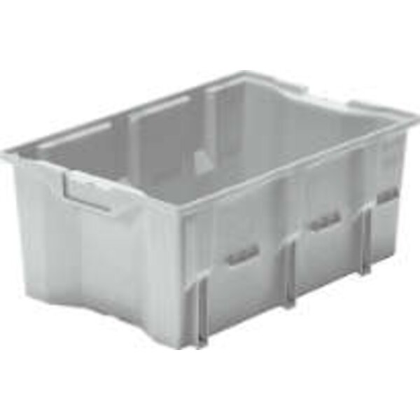 -Drehstapelbehälter Serie DLK, grau Diese Drehstapelbehälter sind aufeinander und nach 180°-Drehung ineinander stapelbar.