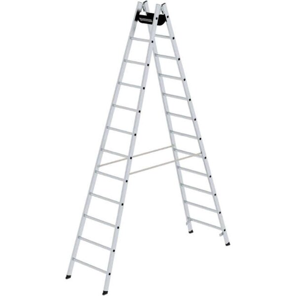 Alu-Stehleiter MUNK, 2x12 Sprossen Leiterlänge 3,51 m Arbeitshöhe bis 4,85 m