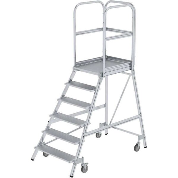Alu-Podestleiter MUNK, 6 Alu-Stufen Podesthöhe 1,44 m Arbeitshöhe bis 3,50 m