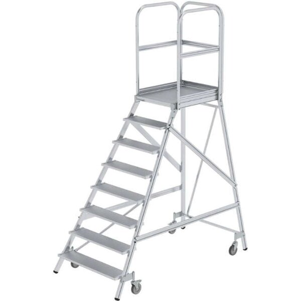 -Aluminium-Podesttreppe, einseitig begehbar, Stufen- und Plattform-Ausführung: Alu, geriffelt Die mobile Rechteckrohrholm-Konstruktion der Aluminium-Podesttreppe sorgt für einen sicheren Stand.