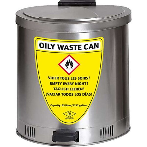 -Entsorgungsbehälter, aus Edelstahl Diese Entsorgungsbehälter werden zum sicheren Entsorgen von lösemittelhaltigen Putzlappen und sonstigen Abfällen benutzt.