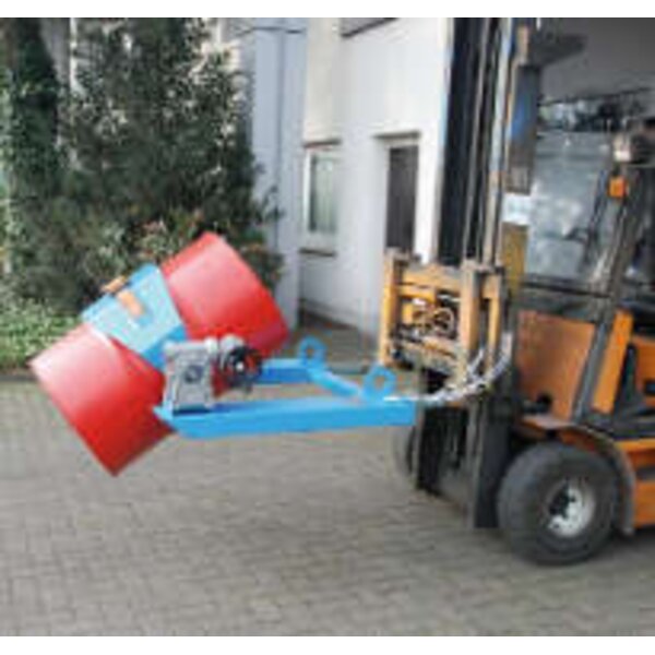 -Fasskipper Typ FLEX Zum Einsatz kommen die Fasskipper beim Transportieren und dosierten Kippen, Wenden und Ablegen von Stahlspund- und -deckelfässern, Rollreifenfässern, Kunststoff-L-Ringfässern und Doppel-L-Ringfässern von 60 bis 220 l Inhalt sowie von 120-240-l-Müllbehältern.