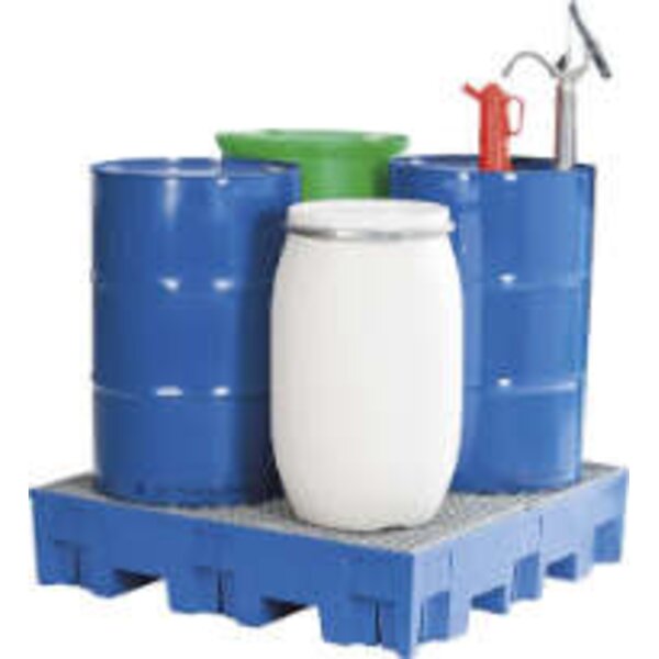-Auffangwanne, aus Polyethylen Diese Auffangwannen sind zur vorschriftsmäßigen Lagerung gewässergefährdender Flüssigkeiten aller Gefährdungsklassen zugelassen. Sie sind hochbeständig gegen Öle, Säuren, Laugen und andere aggressive Stoffe.