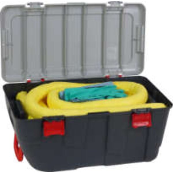 -75-Liter-Notfallset, mit fahrbarem Behälter Diese mobilen Notfallsets kommen überall da zum Einsatz, wo Gefahrstoffe auslaufen können.