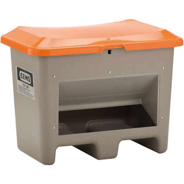 Streugutbehälter CEMO, 200 l B890xT600xH640 mm mit Entnahmeöffnung grau/orange