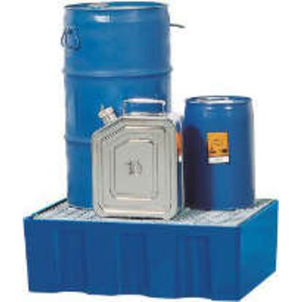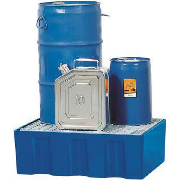 -Auffangwanne, mit und ohne Gitterrost Diese Auffangwannen dienen der vorschriftsmäßigen Lagerung von wassergefährdenden Flüssigkeiten. Zur Lagerung entzündbarer Flüssigkeiten sind sie nicht zugelassen.