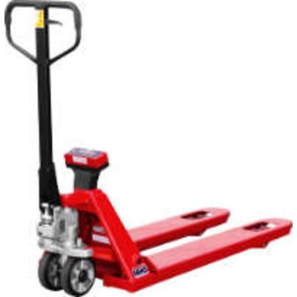 -Gabelhubwagen, Modell RAVAS 1100, mit Waage Der Gabelhubwagen hat einen Messbereich bis 2000 kg und eine Pumpe mit Schnellhub.