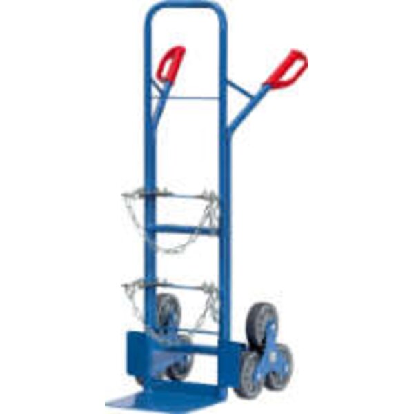 -Stahlflaschen-Treppenkarre für 1 Flasche à 20, 40-50, oder Propangasflaschen m. 11/33 kg Die Stahlflaschen-Karre ist zum Transport von 1 Stahlflasche 20, 40 oder 50 l Inhalt sowie auch für Propangasflaschen mit 11 oder 33 kg Inhalt geeignet.
