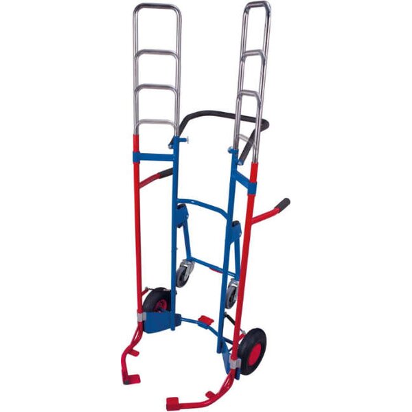 -Reifenkarre mit Teleskop-Holm Die Stahlrohr-Reifenkarre ist mit einem Gasdruck-Hebelsystem zum einfachen Öffnen und Klemmen von Rädern ausgestattet.