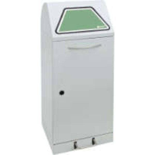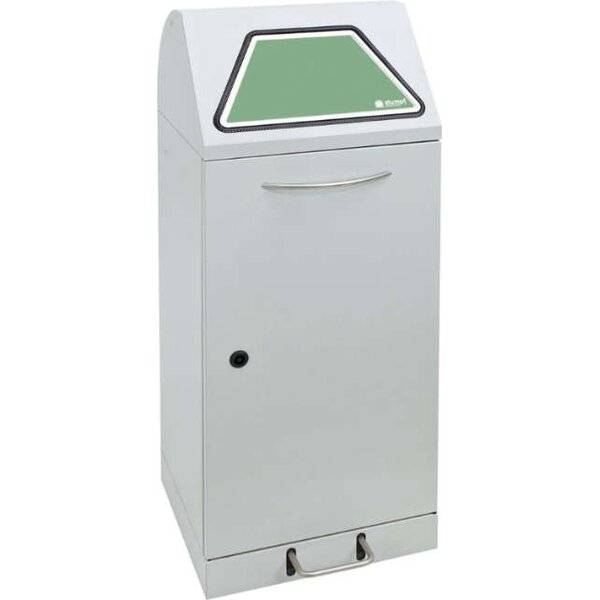 -Wertstoffsammler mit verzinktem Innenbehälter Die Einwurfklappe des vielseitigen Abfallsammlers ist wahlweise mit Hand- oder Fußbetätigung lieferbar und verfügt über einen ergonomischer Bogengriff und Trethebel aus Edelstahl.