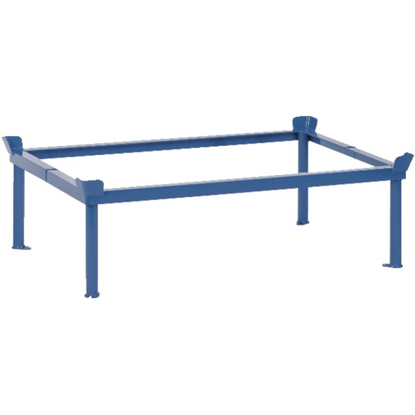 -Aufsatzrahmen für Flachpaletten und Gitterboxen Dieser Aufsatzrahmen ist zum Abstellen von Flachpaletten und Gitterboxen. Die Aufsetzrahmen können über die Fußplatten mittels Verschraubungssatz mit dem Paletten-Fahrgestell verschraubt werden.