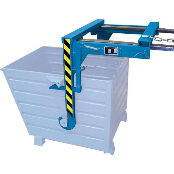 -Stapler-Traversen, Typ BST, RAL 5012 Diese Traversen dienen zum Auskippen von Stapelkippern. Sie sind vom Staplersitz per Seilzug kippbar.