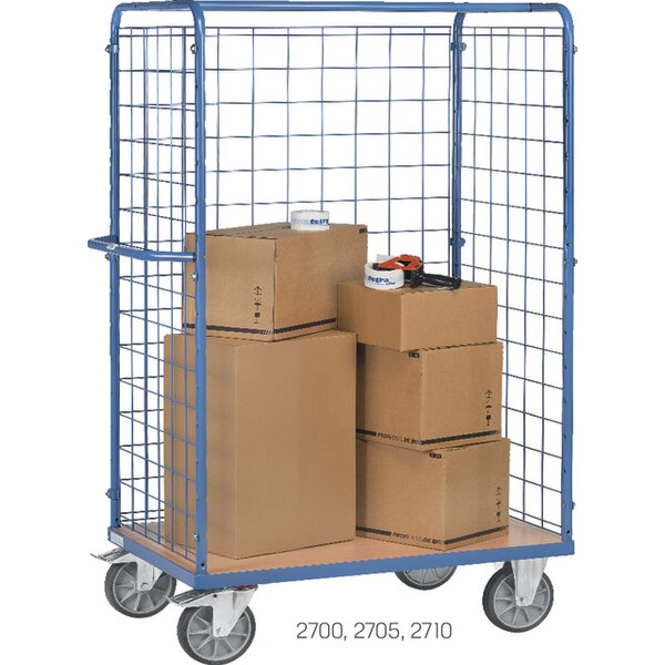 -Paketwagen mit Drahtgitterwänden ohne Dach Die Paketdreiwandwagen haben ein Tragkraft von 600 kg.