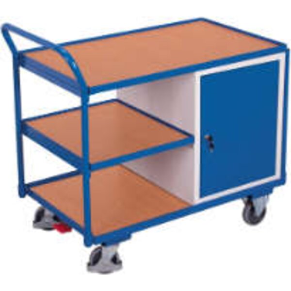 Tischwagen VARIOfit, 250kg B1125xT625xH1010mm RAL 7035/5010 1 Schrank,3 Ladeflächen