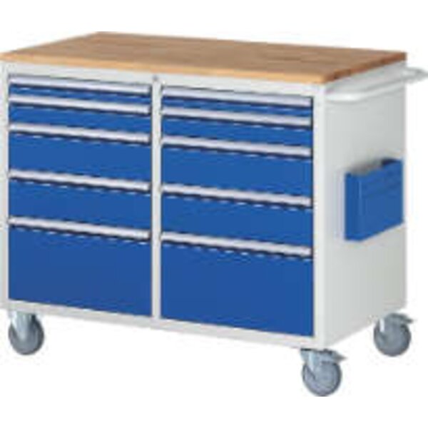 -Montagewagen Serie 7000 Diese Montagewagen verfügen über eine Buche-Massiv-Arbeitsplatte, Stärke 25 mm, mit geölter Oberfläche.