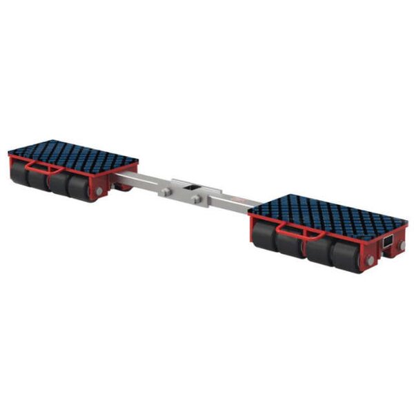 -Schwerlast-Transportfahrwerk Diese professionellen Transport-Sets, bestehend aus je einem Modell der L- und F-Baureihe (3-Punkt Auflage), d. h. Gesamttraglast z. B. L9 + F9 = 18 t. Die robuste, verzugsfreie Schweißkonstruktion sind mit Schwerlastrollen (niedrigstem Rollwiderstand und Eigengewicht) ausgestattet. Bei gleicher Einbauhöhe sind sie untereinander kombinierbar.