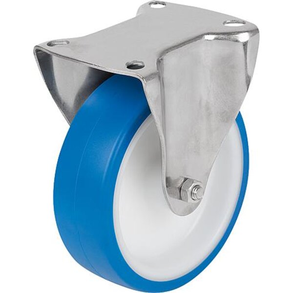 BOCKROLLE OHNE FESTSTELLSYSTEM, D=100, B=35, THERMOPLAST 1.4301, FÜR HYGIENEB...