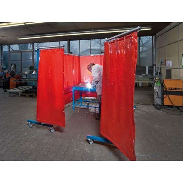 -Schweißer-Schutzwand TransFlex (3-teilig) Diese Schutzwand verfügt über einen stabilen, geschweißten Fahrrahmen aus 4-kant- und Rundrohr.