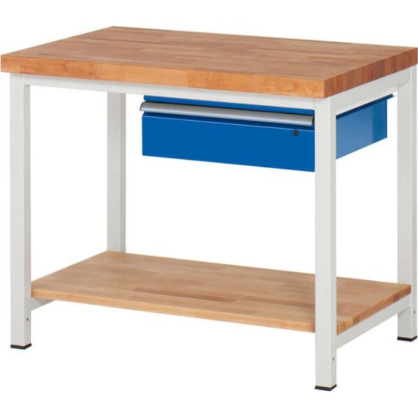 -Werkbank (mit 1 Schublade, FH 150 mm u. 1 x Buche massiv-Ablageboden), Tiefe 700 mm Die Werkbänke gibt es in 700 mm Tiefe.