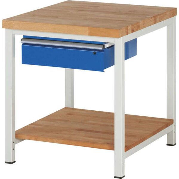 -Werkbank (mit 1 Schublade, FH 150 mm u. 1 x Buche massiv-Ablageboden), Tiefe 900 mm Die Werkbänke gibt es in 900 mm Tiefe.