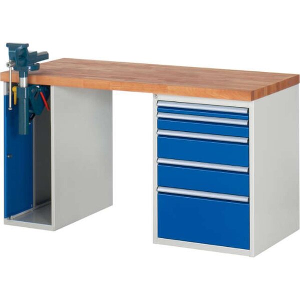 -Werkbank Serie 7000, Tiefe 700 mm, 5 Schubladen, 1 Schraubstockschrank Die Werkbänke haben die Tiefe 700 mm.