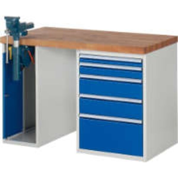 -Werkbank Serie 7000, Tiefe 700 mm, 5 Schubladen, 1 Schraubstockschrank Die Werkbänke haben die Tiefe 700 mm.