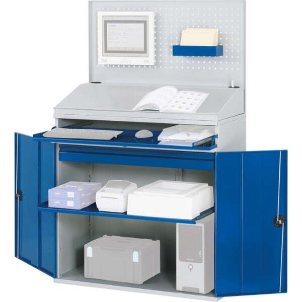 -Computer-Schrank, Breite 1100 mm Diese Computer-Schränke verfügen über eine abschließbare Tastaturklappe mit Tastaturauszug.