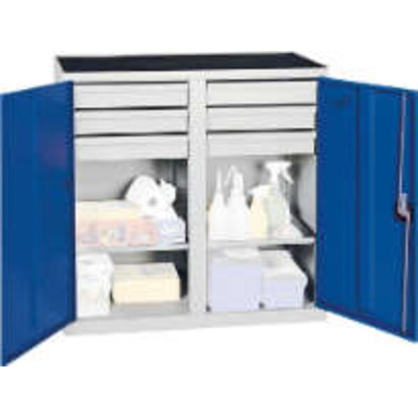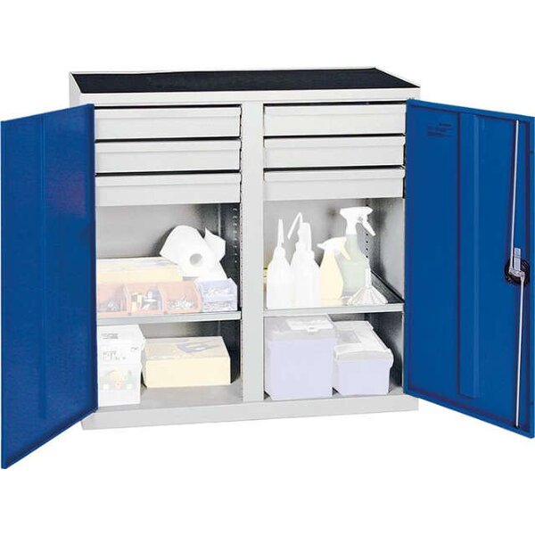 -Werkzeug- und Materialschrank Serie 2000, 6 Schubladen, 2 Fachböden und Mitteltrennwand Diese Werkzeugschränke eignen sich vor allem für Produktionsbereiche. Sie sind aus Qualitätsfeinblech gefertigt und verschweißt. Die Oberfläche ist pulverbeschichtet, unempfindlich, langlebig, schlag- und kratzfest.