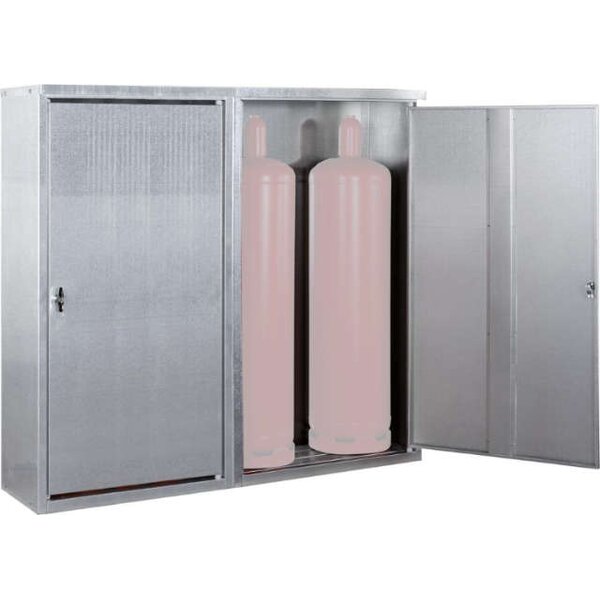-Kleingasflaschenschrank, Türen mit Lüftungsspalten Diese Kleingasflaschenschränke sind für die Lagerung von Propangasflaschen außerhalb von Gebäuden vorgesehen.