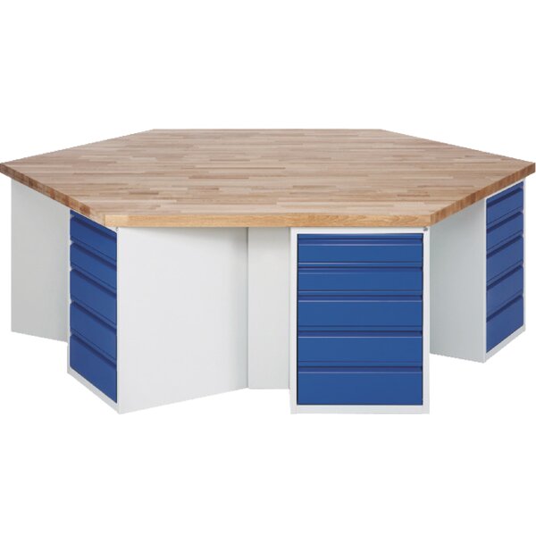 Gruppenwerkbank PRETEC, 6-Eck-Arbeitsplatz