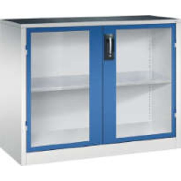 -Schwerlast-Beistellschrank, mit Flügeltüren, RAL 7035/5010 Diese Schwerlastschränke bestehen aus einer langlebigen und stabilen Stahlblechkonstruktion.