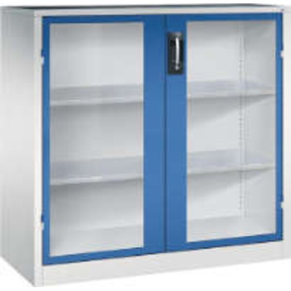 -Schwerlast-Beistellschrank, mit Flügeltüren, RAL 7035/5010 Diese Schwerlastschränke bestehen aus einer langlebigen und stabilen Stahlblechkonstruktion.