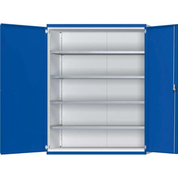 Schwerlastschrank ANKE, B1485xT500xH1950mm RAL7035/5010 o.Mittelwand4 Böden