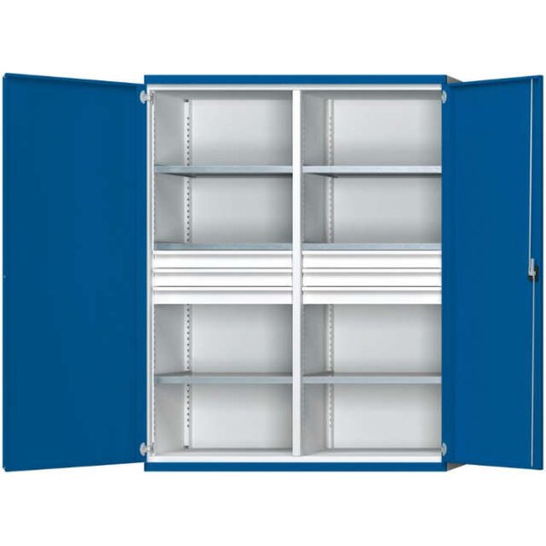 Schwerlastschrank ANKE, B1485xT690xH1950mm RAL7035/5010 m.Mittelwand6Böden,6Schubladen 200kg