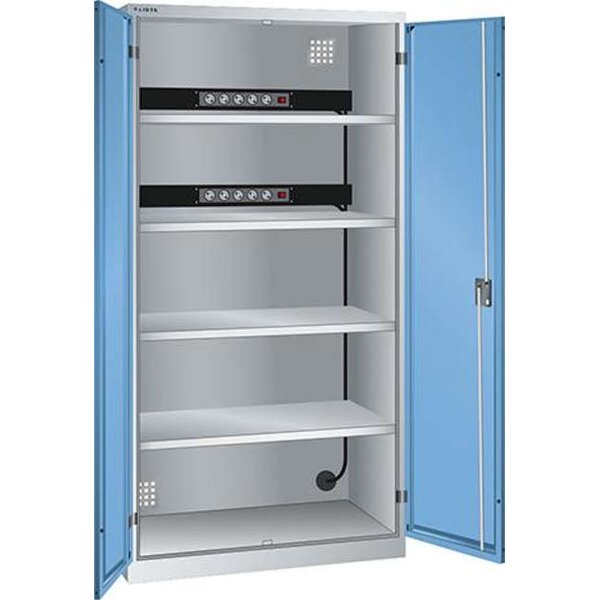 Ladeschrank LISTA, Flügeltüren Ral 7035/5012 BxTxH 1000x580x1950 2x5 fach Schuko