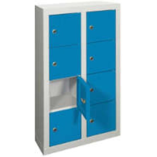 Kleinfach-Wandschrank PAVOY, H815xB460xT200 mm 2x4 Fächer RAL7035/5012 Türen glatt