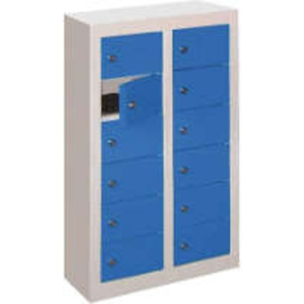 Kleinfach-Wandschrank PAVOY, H815xB460xT200 mm 2x6 Fächer RAL7035/5012 Türen glatt