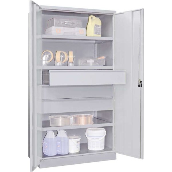 Schwerlastschrank,3 Böd+Schub. B1040xT630xH1950 mm, RAL 7035