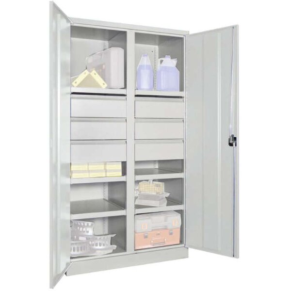 Schwerlastschrank PAVOY, m.TürenH1950xB1040xT630 mm 6 FB, SL 6 x FH 175 mm RAL 7035 Mittelwand