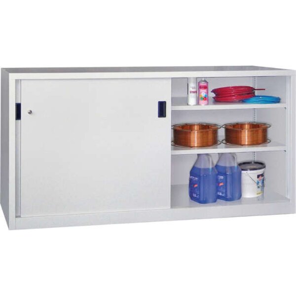 -Schwerlastschiebetürenschrank mit Vollblechtüren und Mitteltrennwand, Böden gepulvert, Breite 2000 mm Dieser Schwerlastschiebetürenschrank verfügt über eine solide verschweißte Stahlblechkonstruktion mit hochwertiger Pulverbeschichtung.
