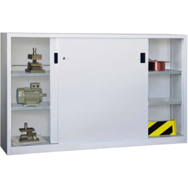 -Schwerlastschiebetürenschrank mit Vollblechtüren und Mitteltrennwand, Böden gepulvert, Breite 2000 mm Dieser Schwerlastschiebetürenschrank verfügt über eine solide verschweißte Stahlblechkonstruktion mit hochwertiger Pulverbeschichtung.