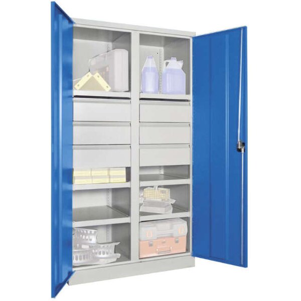 Schwerlastschrank PAVOY, 1950/630/1040 Drehg., mit Trennwand 6 Böden, 6 Schubladen