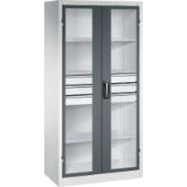 -Schwerlastschrank, mit Flügeltüren und Schubladenblock mittig, RAL 7035/7016 Diese Schwerlastschränke bestehen aus einer langlebigen und stabilen Stahlblechkonstruktion.