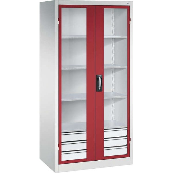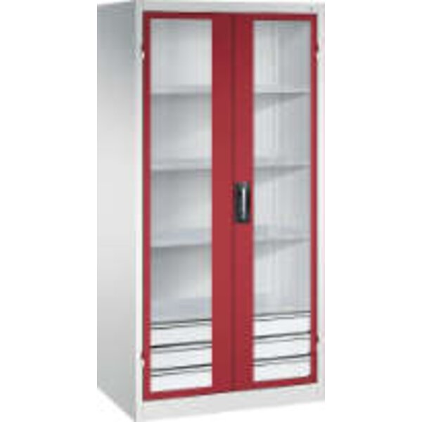 -Schwerlastschrank, mit Flügeltüren und Schubladenblock unten, RAL 7035/3003 Diese Schwerlastschränke bestehen aus einer langlebigen und stabilen Stahlblechkonstruktion.